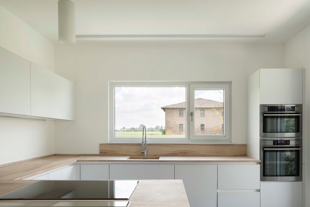 La casa è stata progettata per essere uno spazio con una duplice funzione, abitativa e lavorativa. Il piano terra è composto da zona giorno con cucina e soggiorno open space, locale tecnico e servizi e uno spazio per lo studio e il lavoro. Al primo piano si trovano tre camere da letto e servizi, oltre che una playroom per i bambini che, all’occorrenza, diventa ufficio per chi necessita di privacy e concentrazione.